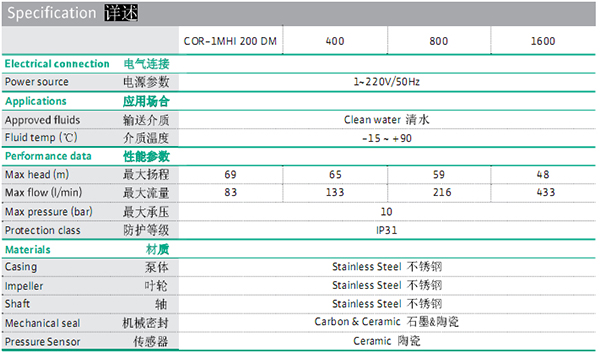 名稱:變頻恒壓供水泵COR-1MHIDM